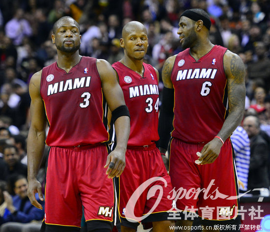 有了詹姆斯,比赛好滋味。相信这是热火所有队员的感受,但热火并不是只有詹姆斯,韦德、波什两大巨头能量无限,雷·阿伦、查尔莫斯、巴蒂尔、哈斯勒姆等人也各有绝技,这些人组合到一起,特别是上赛季一尝夙愿夺取了总冠军后,热火队的王者气质尽显。在新赛季开局不是特别顺利的情况下,热火队在常规赛中创造了27连胜、赛季66胜的队史纪录。从东西部对战的格局看,热火队的处境跟当年乔丹时代的公牛队很像——西部豪强林立、东部一枝独秀,东风却总是压倒西风。纵观整个NBA,热火队当下的综合实力确实要胜出其他球队,但他们能否像乔丹时期的公牛队一样开创一个王朝,还要看詹姆斯等人在季后赛的表现。
